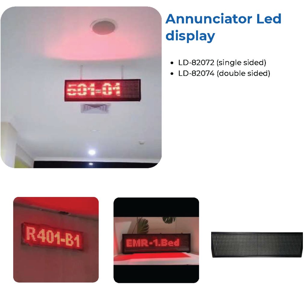 LED Display Dapat di Gunakan untuk Menampilkan nomor (Kamar, Bed, Toilet). Digunakan bersama Interface Kontrol dan hanya dapat difungsikan dengan Unit Nurse Call.